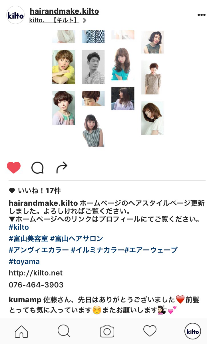 kilto.インスタグラムページは↓をご覧ください!!