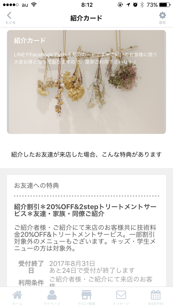 【お友達に紹介】をおしてもらうと携帯で簡単に送れます!!おまけにわかりやすくクーポンもついております!!