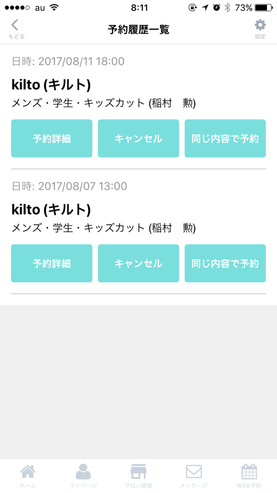 またアプリのなかで予約の履歴がございます!