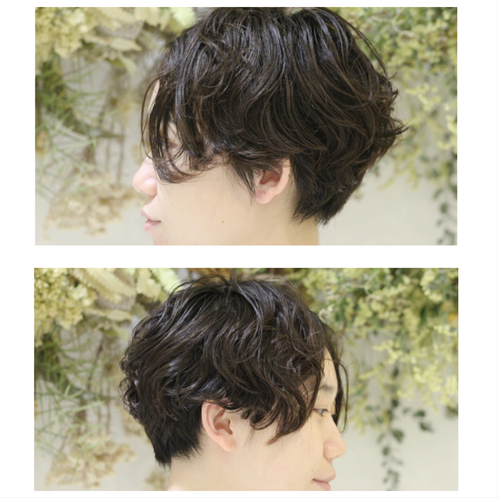 前下がりのハンサムなショートスタイルに大きめでしっかりとパーマをかけました!!