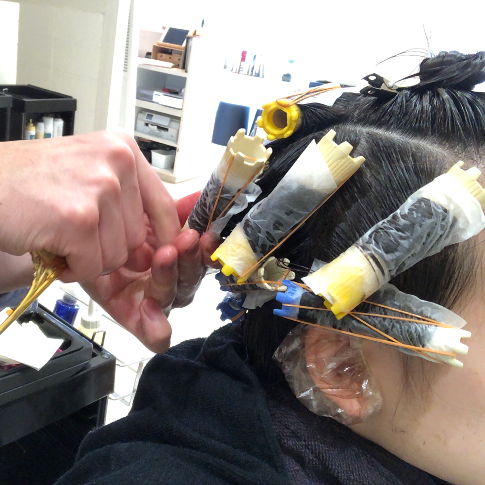 一般的なホット系(加熱ロット)パーマは70℃以上の熱を用い、ロッド自体が熱くなります。