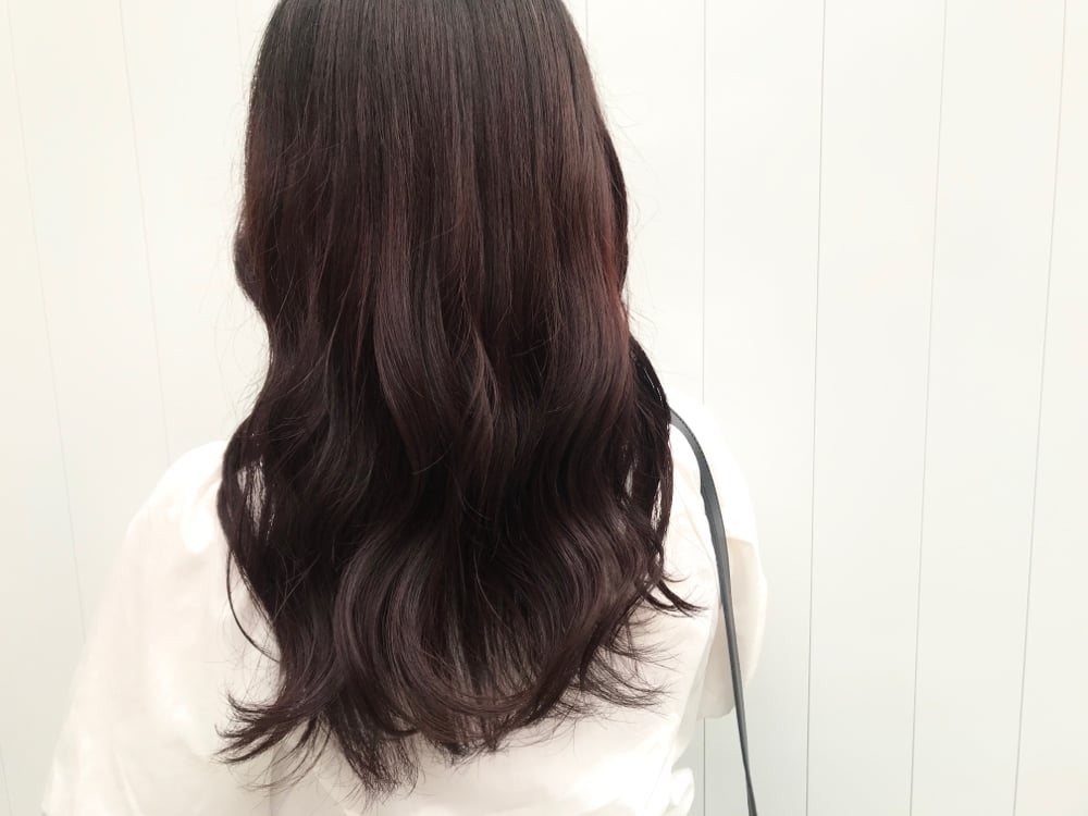 黒染めは赤みが多く、暖色系カラーにするとカラー前と雰囲気の違った髪色にできると思いました!