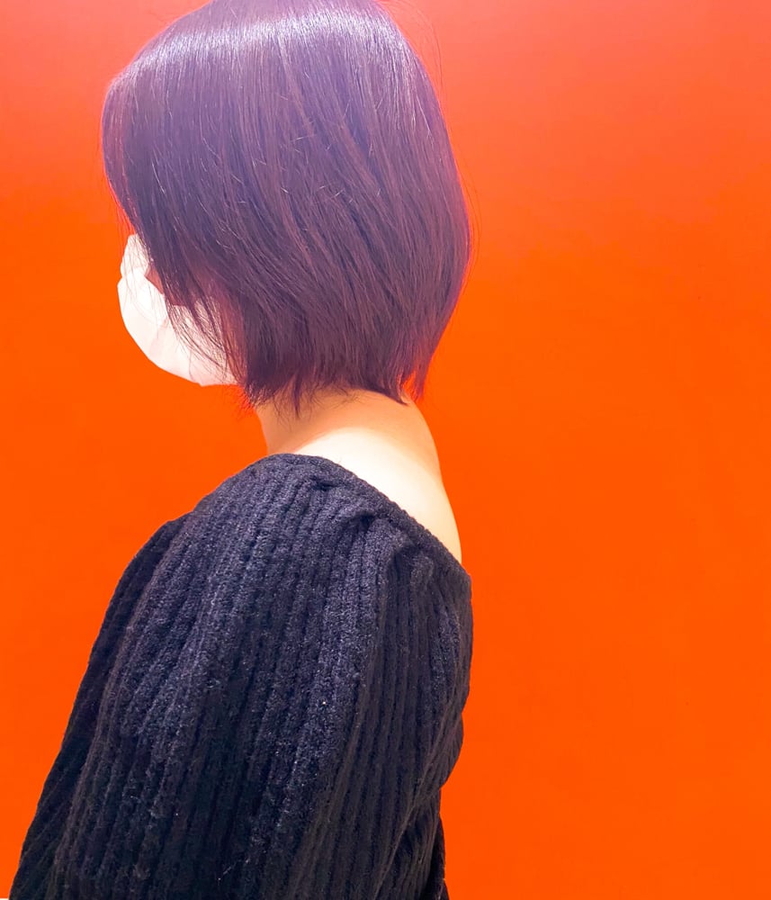 最近まで暗いカラーを入れ続け、色味が入りにくい髪になっている状態でした。ブリーチを使用せず、出来る限り色味をだせるような薬剤を選ばせていただきました!