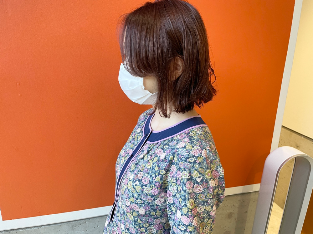 パーマがかかっていたので、活かせるように、軽すぎず重すぎずな前下がりベースのボブに✧